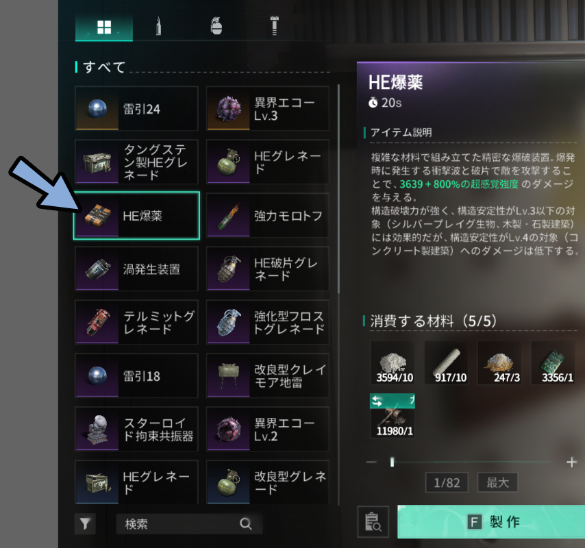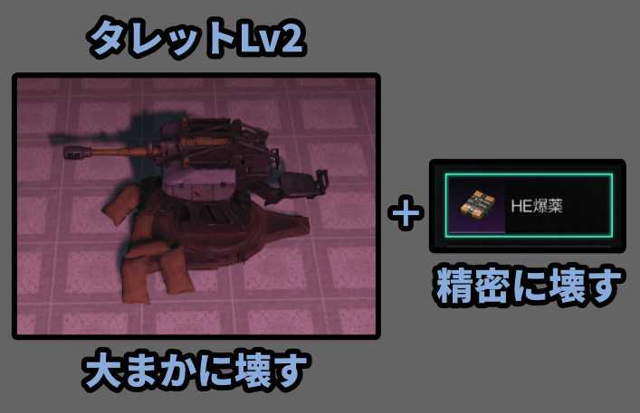 HE爆薬は持ち歩いて投げるだけ、精密に壊す用です。