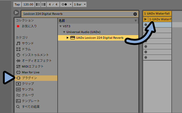 プラグインを探してトラックにドラッグ&ドロップ。