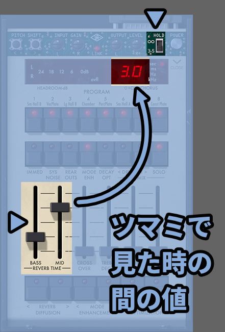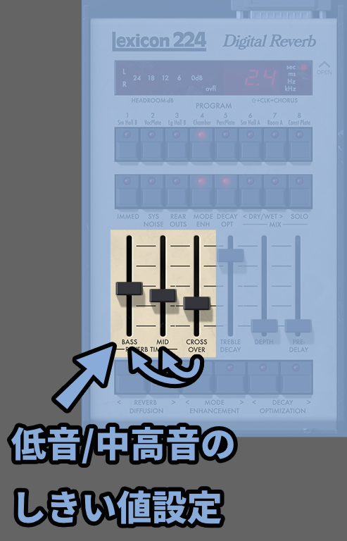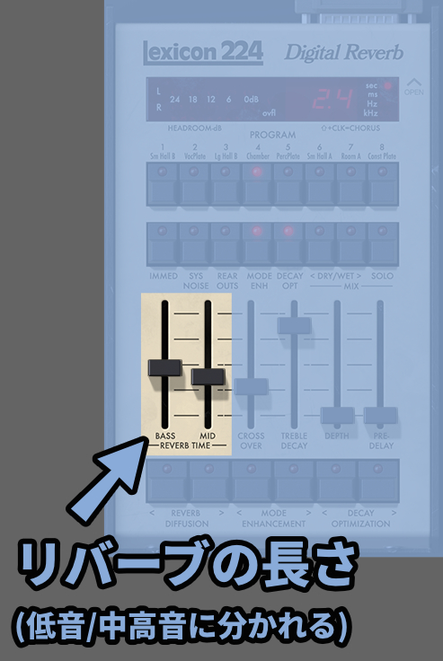Reverb Timeにある「Bass(低音)」と「Mid(中~高音)」でリバーブの長さを変えれます。
