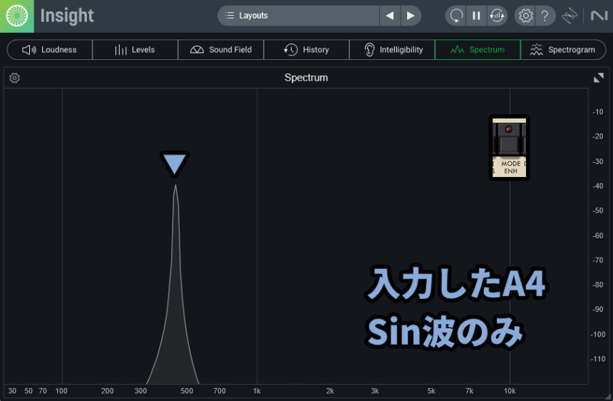 オフで440Hzのsin波を流すとこのような周波数になりますが…