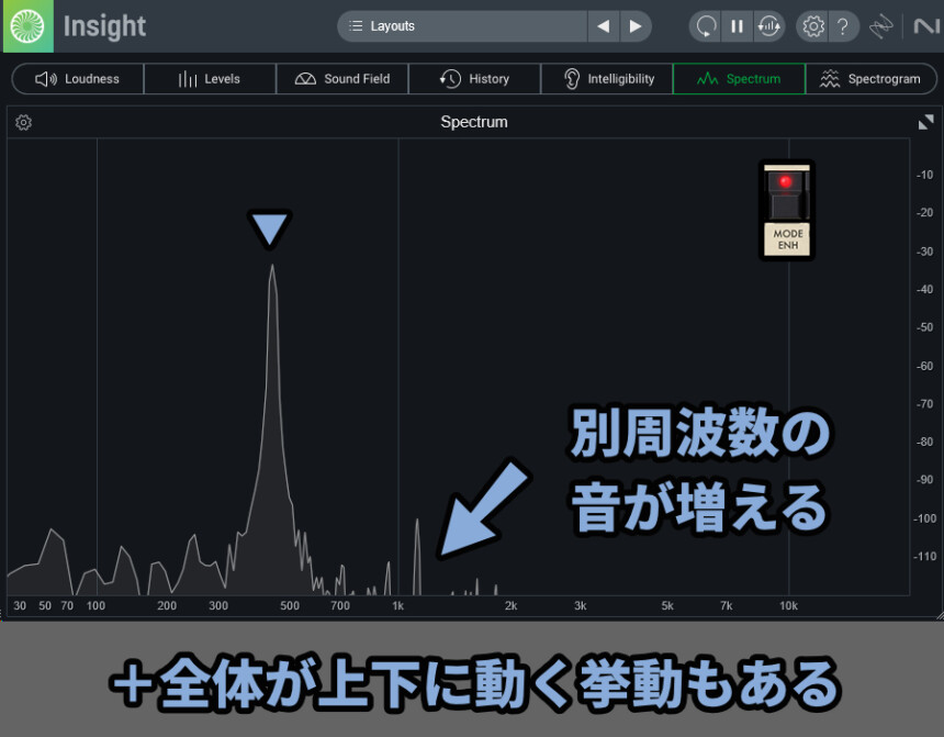 Mode Enhを入れると余計な周波数の音が発生します。