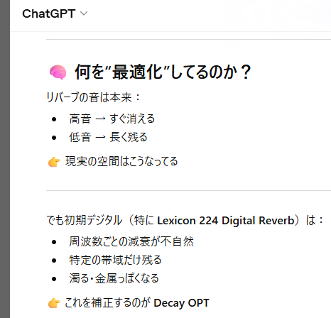 実際の空間で音が消えるときの周波数特性などを考慮するモノっぽい(?)です。