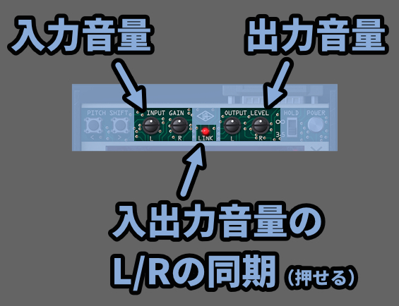 ・LinkがIn/Output GainのL/Rの同期/非同期設定