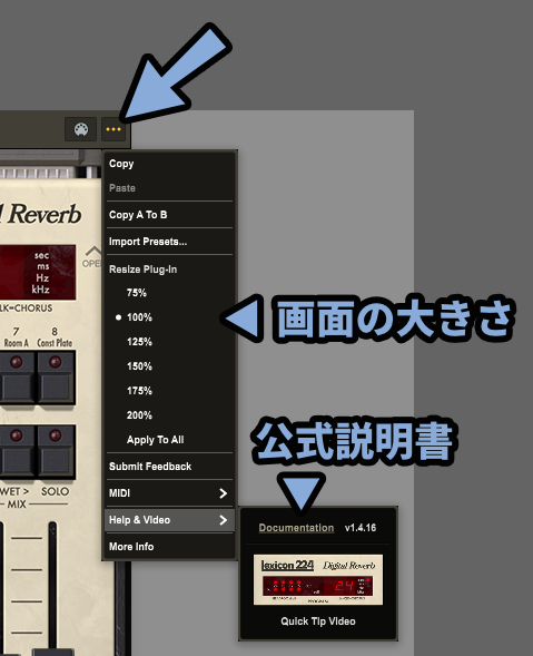 するとLexicon 224 Digital Reverbが立ち上がります。