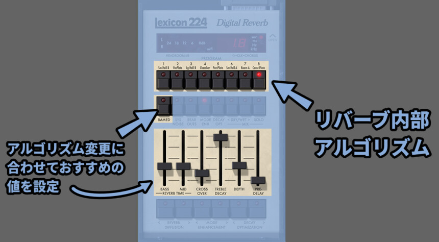 そしてIMMEDが無効の状態だとアルゴリズムに合わせたリバーブパラメーターが自動で設定されます。