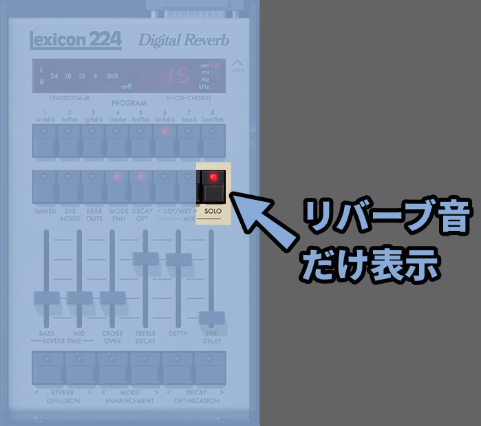 SOLOを押すとリバーブ音のだけが聞こえるようになります。
